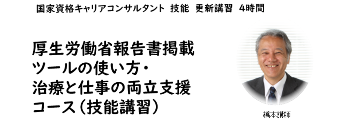 特定非営利活動法人キャリアサポート研究会が、厚生労働省の指定を受けた国家資格キャリアコンサルタントの更新講習(技能講習)です。