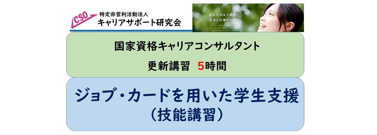 教育領域で、大学生・専門学校生が対象ですが、ジョブ・カード作成支援ですので求職者など社会人でも応用できる講座です。